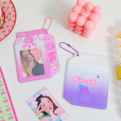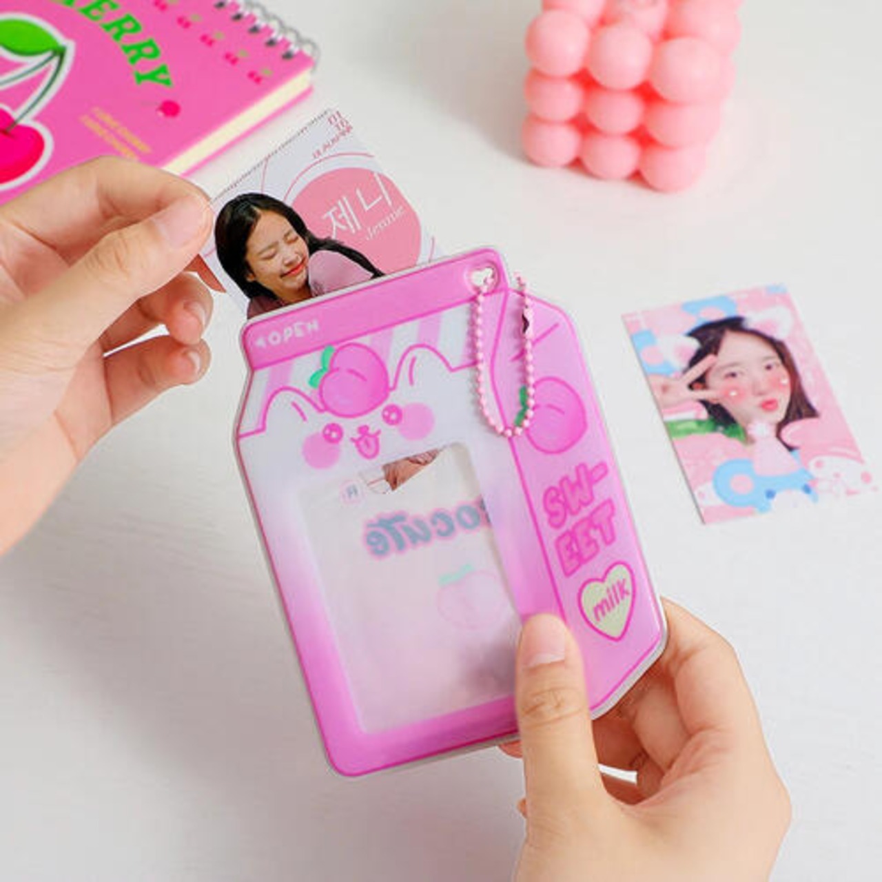 トレカ ケース ドリンク型 飲み物 韓国 推し活 可愛い 収納 チェキ 写真 PVC スリーブ キーホルダー ライブ ペンミ ピンク おもしろ 防湿 ホルダー