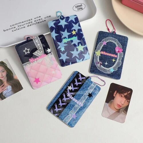 トレカ ケース 韓国 推し活 レトロ Y2K 黒 可愛い チェキ 写真 収納 キーホルダー アイドル 星 デニム風 ペンミ ライブ 防湿 スリーブ ファイル