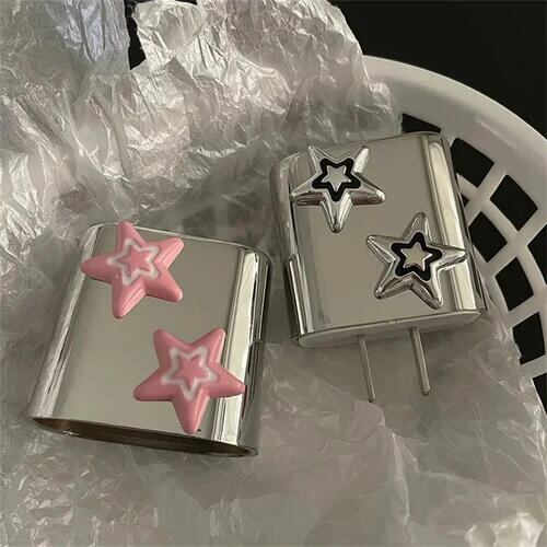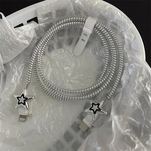 iPhone ケーブル 断線防止 カバー 星 レトロ メタリック シルバー かわいい 韓国 ピンク 黒 充電アクセサリ アダプタ 保護 18-20W USB-C