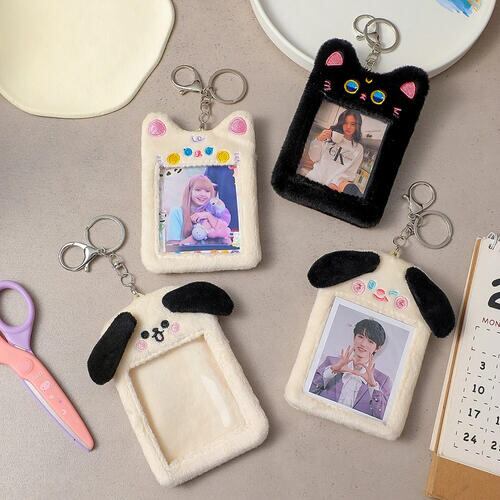 トレカ ケース 韓国 推し活 ぬいぐるみ 可愛い チェキ 写真 ペンギン 猿 猫 柴犬 動物 ふわふわ キーホルダー 収納 スリーブ ペンミ ライブ フレーム