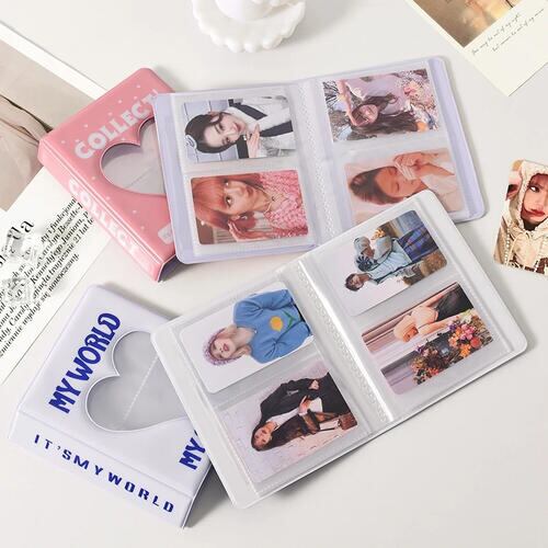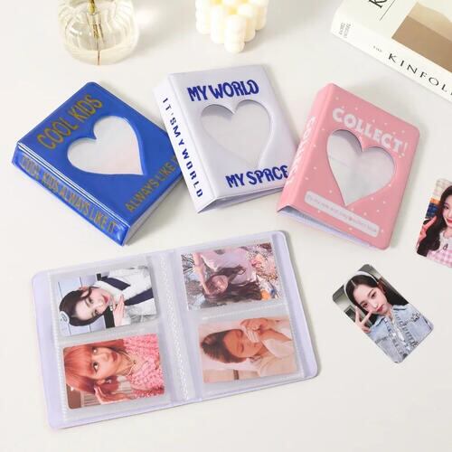 トレカファイル アルバム コレクション 韓国 128枚 収納 スリーブ 4ポケット 透明 バインダー ピンク ハート 可愛い A5 アイドル 推し活 フォト