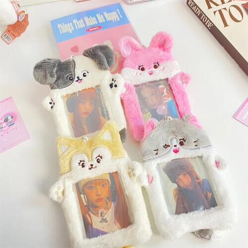 トレカケース ぬいぐるみ 動物 アニマル型 ふわふわ 犬 猫 狐 うさぎ ピンク 収納 キーホルダー スリーブ 硬化ケース 可愛い 韓国 ペンミ ライブ 推し活