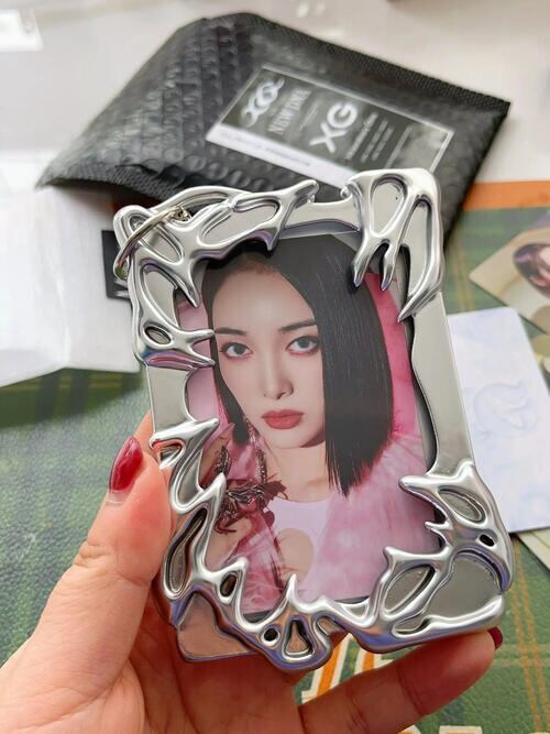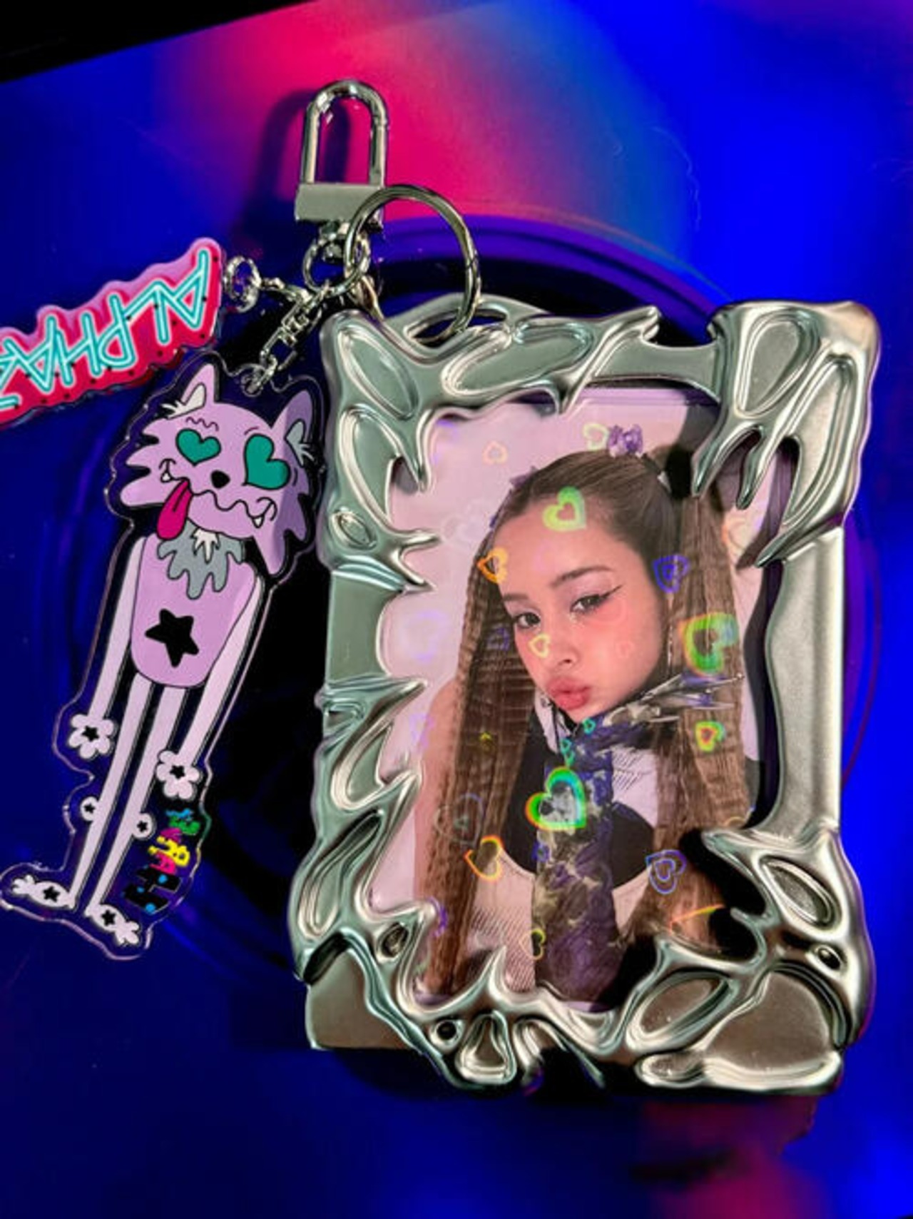 トレカ ケース メタリック シルバー 液状 おしゃれ 韓国 推し活 可愛い アイドル フォト チェキ キーホルダー 硬化 メッキ フレーム ペンミ ペンサ Y2K