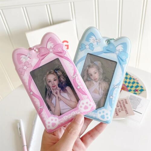 猫耳 トレカ ケース かわいい 韓国 リボン かわいい 推し活 おしゃれ アイドル キーホルダー 硬質 ホルダー 収納 スリーブ ペンミ フォト チェキ 透明 ライブ