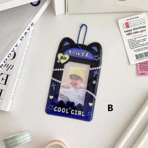 猫耳 トレカ ケース 韓国 かわいい 推し活 キーホルダー Y2K おもしろ レトロ 収納 ホルダー チャーム アイドル チェキ フォト 黒 赤 青 ピンク PVC 防湿 スリーブ アイドル 平成