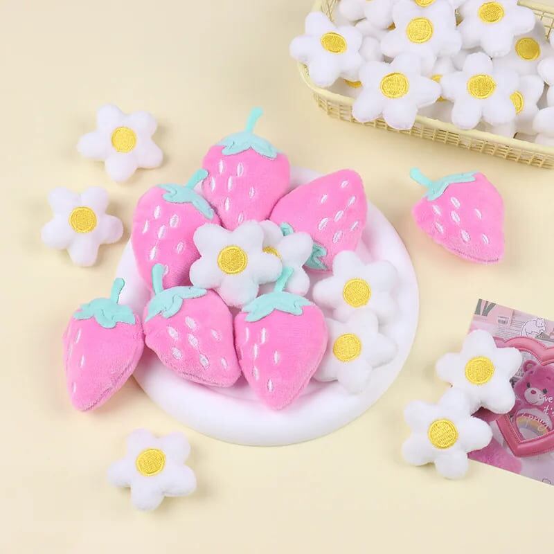 オリジナルのぬいぐるみ風デザインで、ピンクのレトロフルーツがおしゃれさを演出。