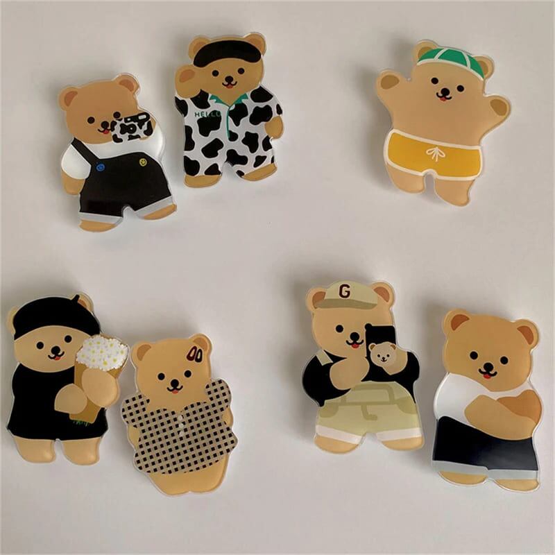 スマホグリップ 韓国 くま かわいい キャラクター ブラウン おしゃれ オリジナル ブランド アクリル 強粘着 スマホリング 落下防止 アニマル