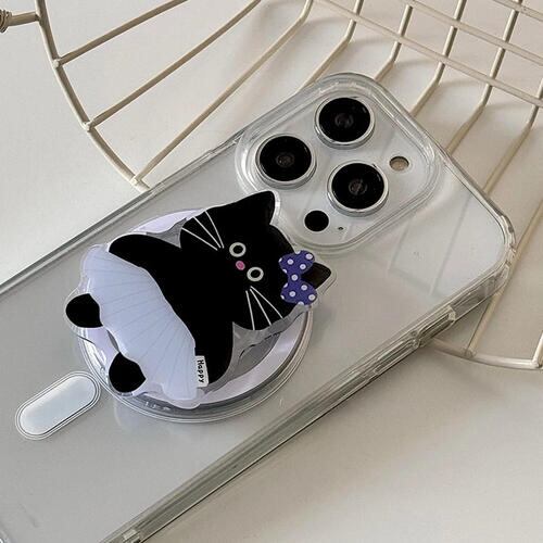 スマホグリップ 韓国 猫 黒猫 かわいい おしゃれ キャラクター オリジナル ブランド 強粘着 スマホリング 落下防止 アクリル アニマル 女の子