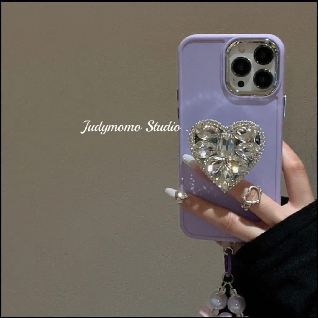 スマホグリップには、可愛らしいハート型ビジュークリスタルが施されています。