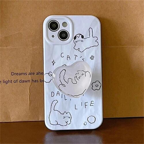 透明なハートの中にかわいい猫♪おしゃれなスマホグリップ☆