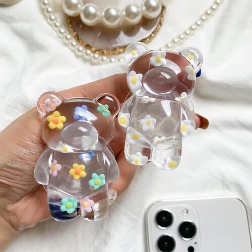 スマホグリップ 韓国 熊 くま かわいい 透明 クリア 花 キラキラ おしゃれ スタンド 土台 撮影 シンプル iPhone Samsung リング
