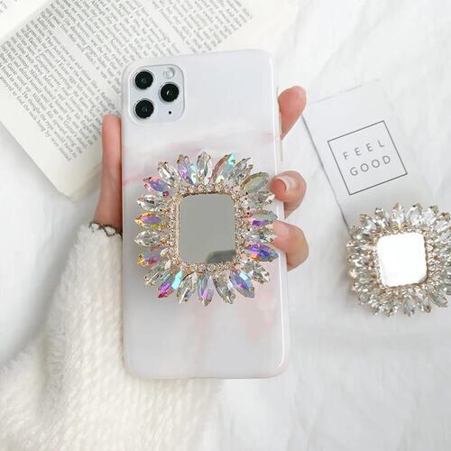 スマホグリップ 韓国 ミラー 鏡 キラキラ ストーン スクエア スタンド かわいい おしゃれ シンプル 土台 撮影 Samsung iPhone GALAXY