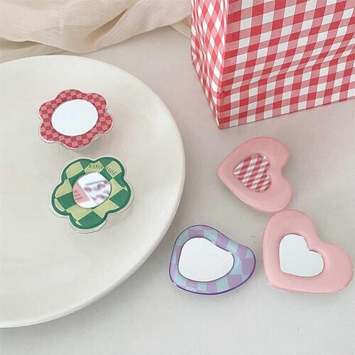 ハートや花デザイン♪小さくてかわいいミラースマホグリップ☆