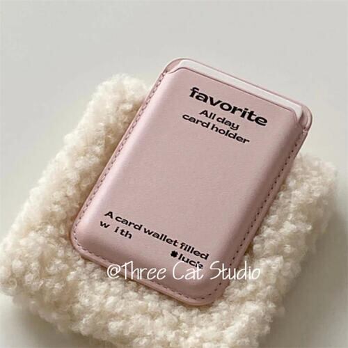 スマホ カードケース 貼り付け ピンク 英字 ロゴ シンプル かわいい おしゃれ 韓国 磁気 マグネット magsafe 背面 収納 薄型 iPhone 財布
