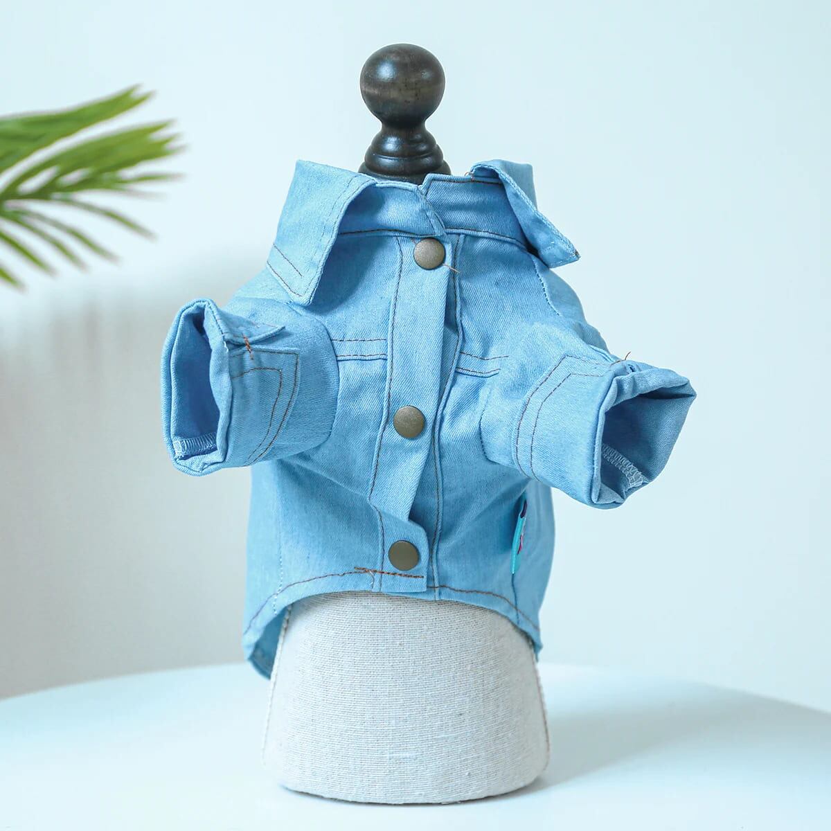 犬 服 デニム シャツ リード ハーネス 男の子 春夏秋 おしゃれ 袖あり 虫除け 散歩 着せやすい 小型犬 中型犬 シンプル ダックス コーギー 青 クール