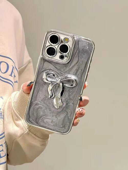 iPhone スマホ ケース カバー 12 13 14 15 Pro カメラ リボン 3D オーロラ キラキラ おしゃれ かわいい 個性的 韓国 シルバー レトロ