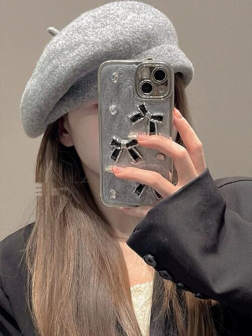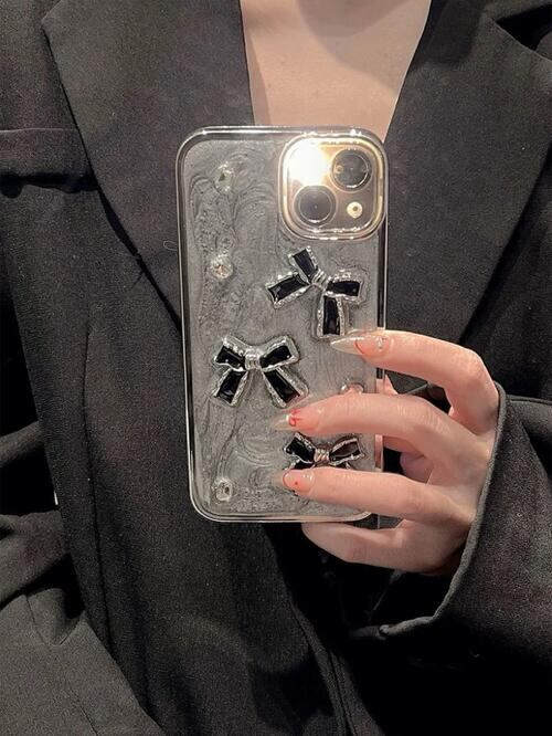iPhone ケース カバー 12 13 14 15 Pro Max リボン 3D 立体 オーロラ キラキラ グレー モノトーン 個性的 レトロ Y2K 韓国 耐衝撃