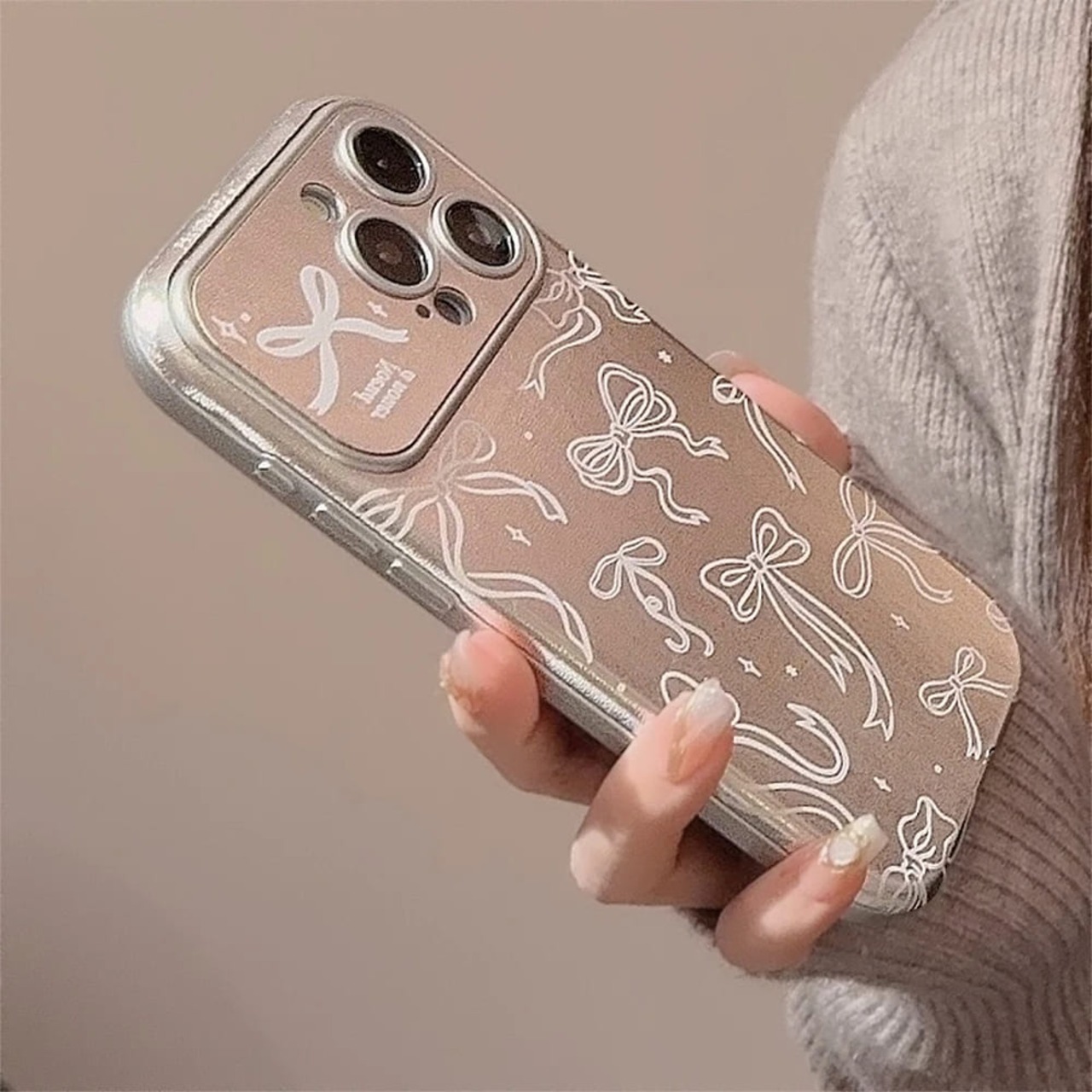 iPhone ケース カバー 12 13 14 15 Pro Max レンズ保護 リボン シルバー おしゃれ 個性的 韓国 カメラ かわいい キラキラ Y2K レトロ