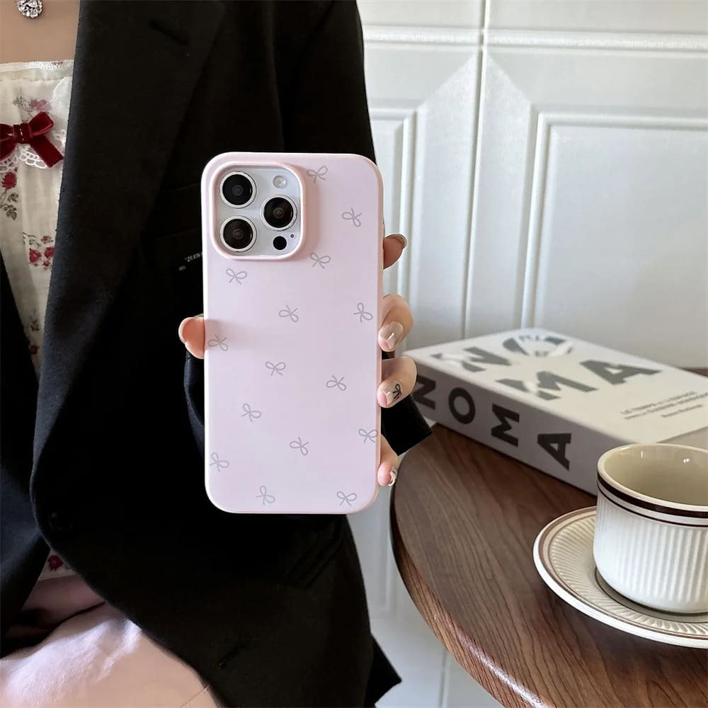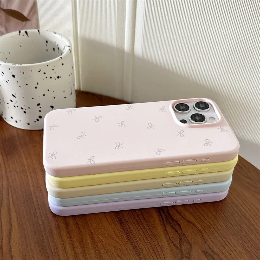 くすみカラーが大人可愛い!リボン柄のマットシリコンケース☆