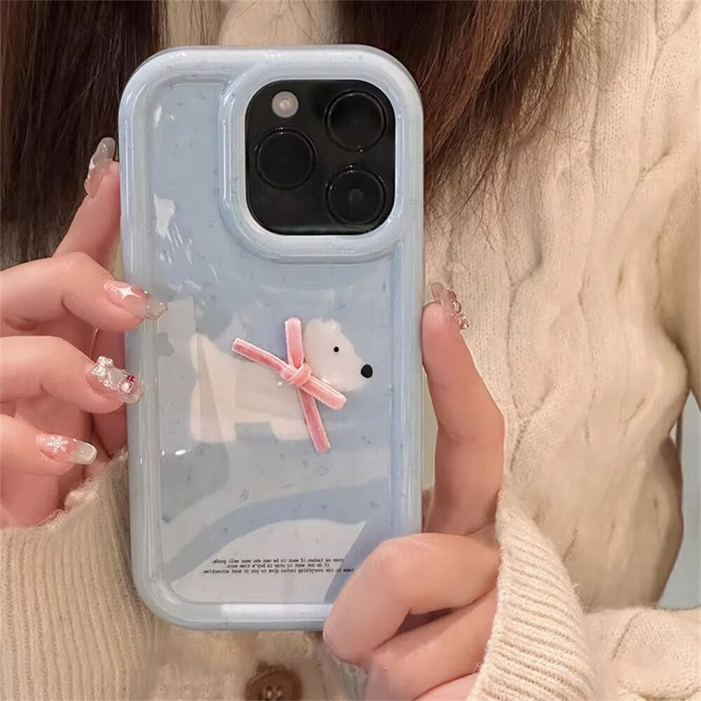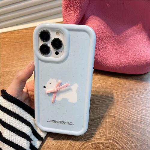 iPhone ケース ソフト カバー 15 14 13 12 11 pro max 耐衝撃性 犬柄 リボン かわいい 韓国 3D 水色 レトロ Y2K 動物 柔らかい