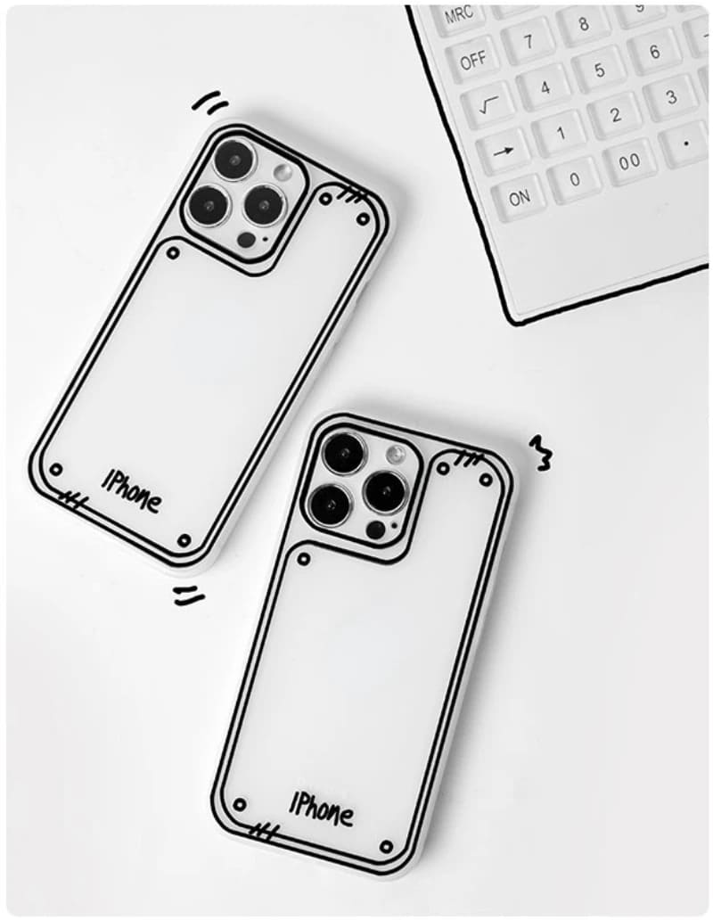 iPhone ケース カバー シリコン SE2 XR XS 12 13 14 15 Pro Max カメラ 黒 白 モノトーン コミック風 おしゃれ 柔らかい おもしろ