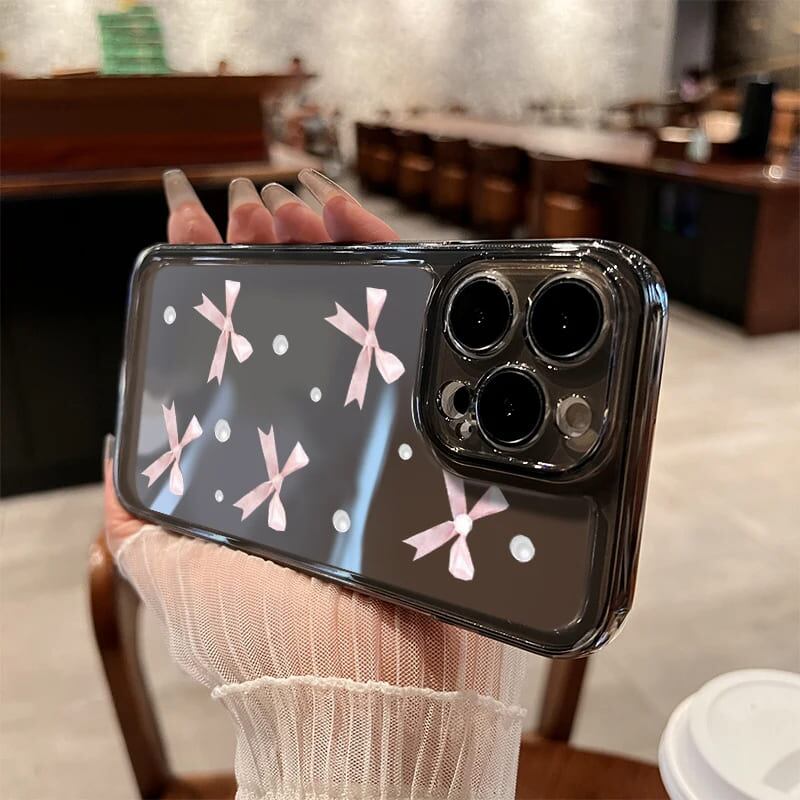 ピンクのリボンが可愛い!おしゃれな耐衝撃クリアケース☆