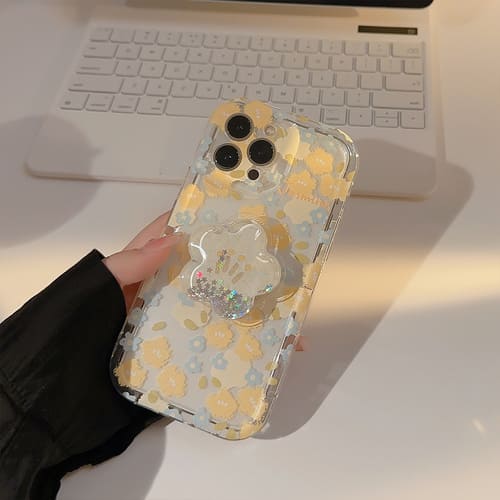 スタンド付きのキラキラ花柄のiPhoneケース!