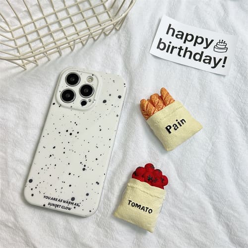 マーブル柄がおしゃれなiPhoneケース!ユニークなパンやトマトのグリップ付き☆