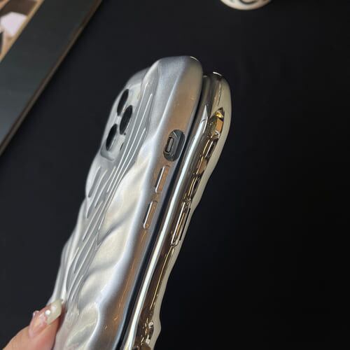 こちらのiPhoneケースは、個性的なウェーブデザインが特徴です。メタリックなカラーとマットな質感で、クールでおしゃれな印象を与えます。