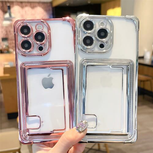 iPhone ケース 透明 カード収納 おしゃれ メンズ 背面収納 クリア 全面保護 シリコン カバー メッキ フレーム 11 12 14 15 pro max