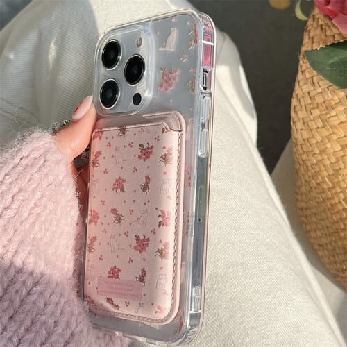 猫&花柄がかわいい!Magsafe対応のカードケース付きiPhoneケース