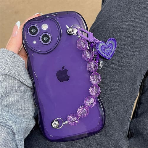 iPhone ケース 韓国 ウェーブ うねうね 紫 Y2K ハート クリア カメラ チャーム ストラップ付き かわいい おしゃれ xr 11 12 14 pro