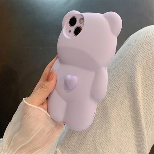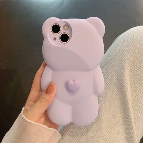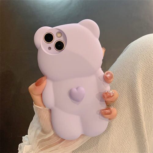 iPhone ケース 韓国 シリコン くま 熊 動物 かわいい 衝撃に強い おしゃれ 紫 ハート カバー 立体 xr x 11 12 13 14 pro max