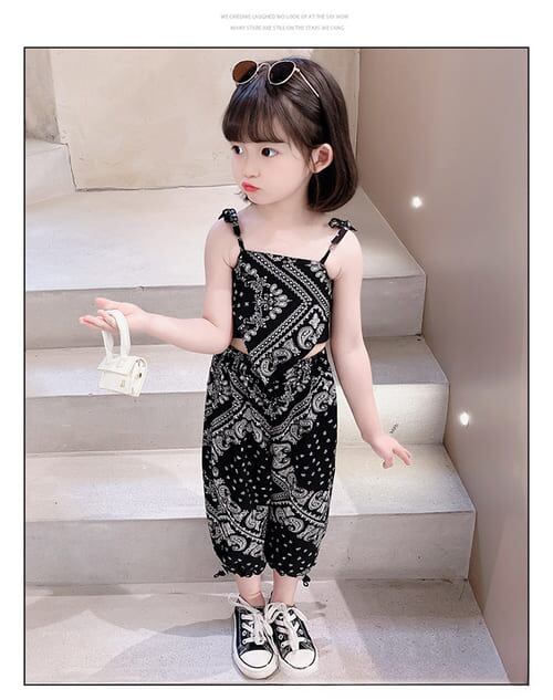 子ども服 女の子 キッズ 夏服 セットアップ 大人っぽい おしゃれ ノースリーブ キャミソール リボン バンダナ柄 長ズボン 衣装 上下セット 2歳 7歳