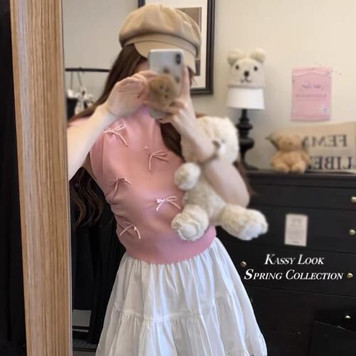 ガーリーなリボンモチーフ♪シンプルだけどおしゃれなサマーニット