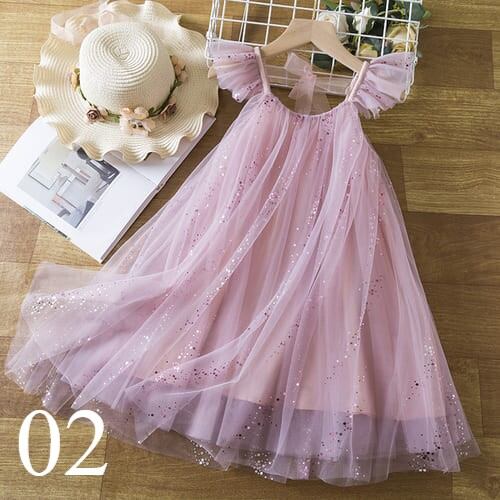 ふわふわチュールにスパンコール☆プリンセスのようなキュートなドレス