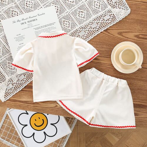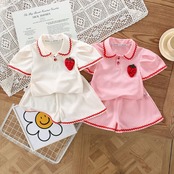 子ども服 女の子 キッズ ベビー 夏服 セットアップ 半袖 ポロシャツ 襟付き ショートパンツ いちご アップリケ 白 ピンク カジュアル 動きやすい