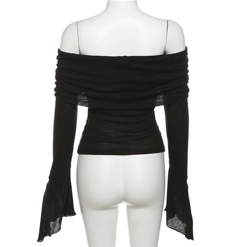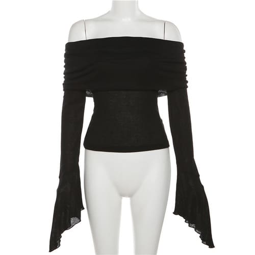 レディース トップス オフショルダー カットソー 長袖 韓国 おしゃれ 秋冬 ショート丈 クロップド タイト 長袖 Y2K セクシー 白 黒 肩出し グランジ きれいめ