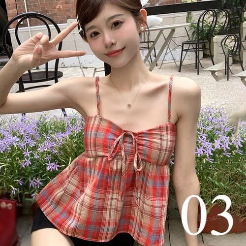 レディース トップス キャミソール 夏 秋 チェック シンプル カジュアル レイヤード 格子 おしゃれ かわいい 韓国 Y2K レトロ ギンガム ショート丈 ペプラム
