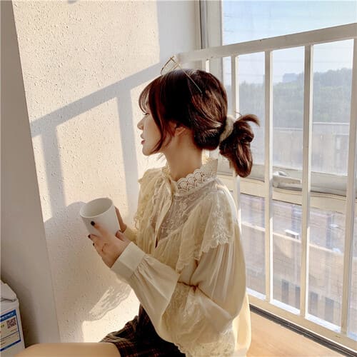 春秋にぴったり♪ガーリーなヴィンテージ風レースブラウス