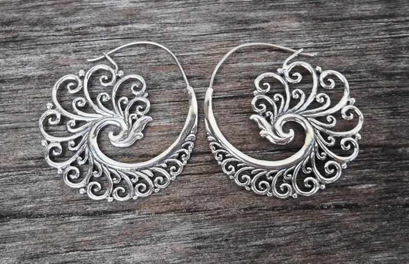 ラウンドフェミニン フープ ピアス 1ペア 合金 大ぶり 大きい エスニック アジアン ボヘミアン 民族 ヴィンテージ ハワイアン ゴールド シルバー