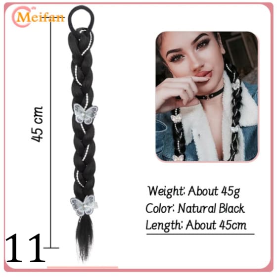 三つ編み一本 ワンタッチ つけ毛 ゴム 部分 ウィッグ エクステ ヘアアレンジ バタフライ ツイン ポニーテール 韓国 かわいい ダンス ライブ 衣装