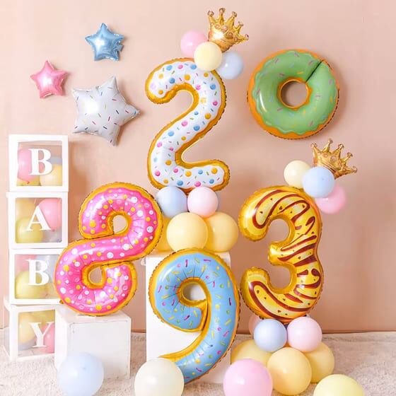 バルーン 数字 お菓子 スイーツ ドーナツ 誕生日 月齢 出産 お店 周年 結婚式 祝い 装飾 パーティー おしゃれ かわいい 大きい 大人 女の子