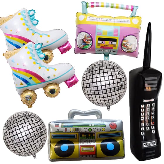 レトロ バルーン セット ラジカセ 携帯電話 ローラースケート お店 周年 祝い フォト パーティー 大きい 大人 ダンス ディスコ 80s 90s