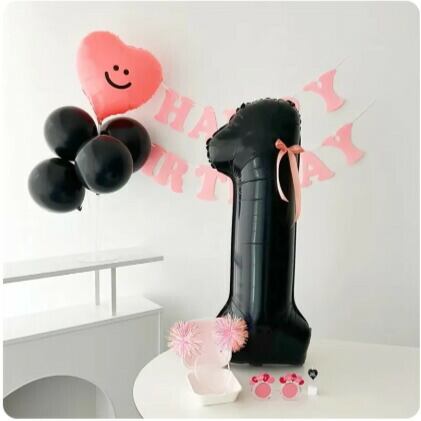 32インチのリボン付きバルーンでフォトジェニックな空間に!誕生日や周年記念をシックに彩る