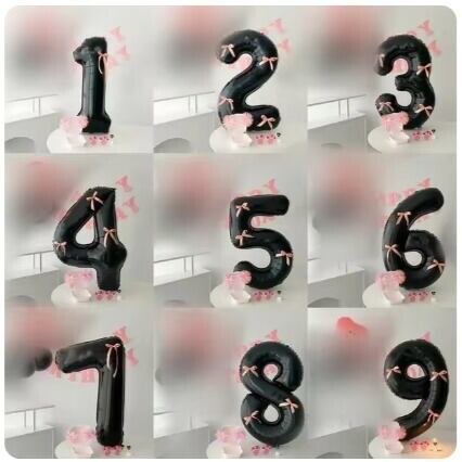 40インチ バルーン 数字 ブラック リボン 誕生日 月齢 出産 お店 周年 結婚式 祝い 装飾 フォト おしゃれ かわいい 大きい 大人 女の子