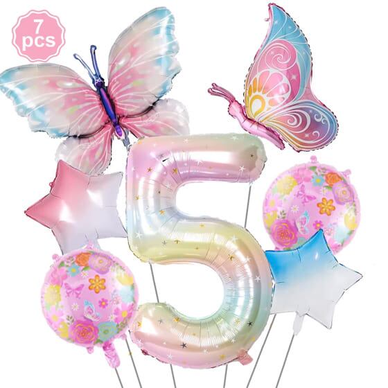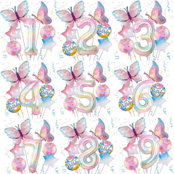 ピンクボール バルーン セット バタフライ 蝶々 ファンシー 数字 アルミ 大きい 誕生日 月齢 出産 お店 周年 結婚式 祝い 装飾 フォト ピンク 女の子